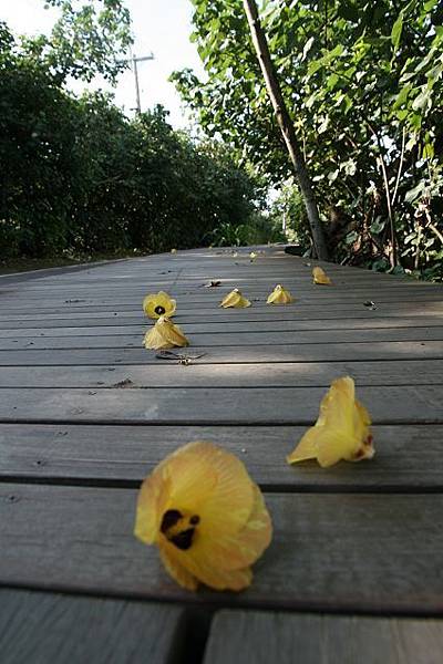 穿上輕便雨衣走在村道,有點熟悉的景物浮現出來,去年曾跟著弟的公司來此一遊,參加水上草原的趣味行程,眼前的大片草原正開著白潔的野薑花,問了阿婆說: